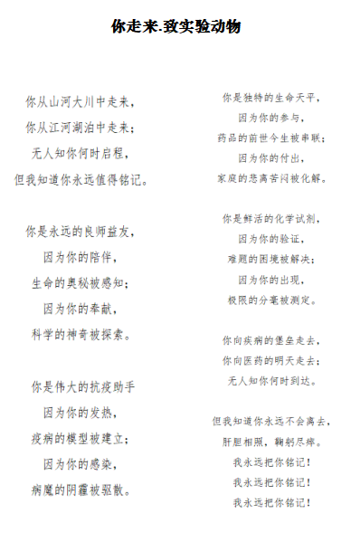 为了铭记实验动物为人类健康事业所做出的巨大贡献和牺牲,增强广老员工尊敬畏生命、尊重生命、善待生命、拯救生命的意识,在第45个“世界实验动物纪念日”到来之际,由BB贝博艾弗森联合校团委主办,机能学实验实训中心承办的第三届“我与实验动物的故事” 原创诗歌、漫画作品征集活动圆满完成了作品征集和评选工作。