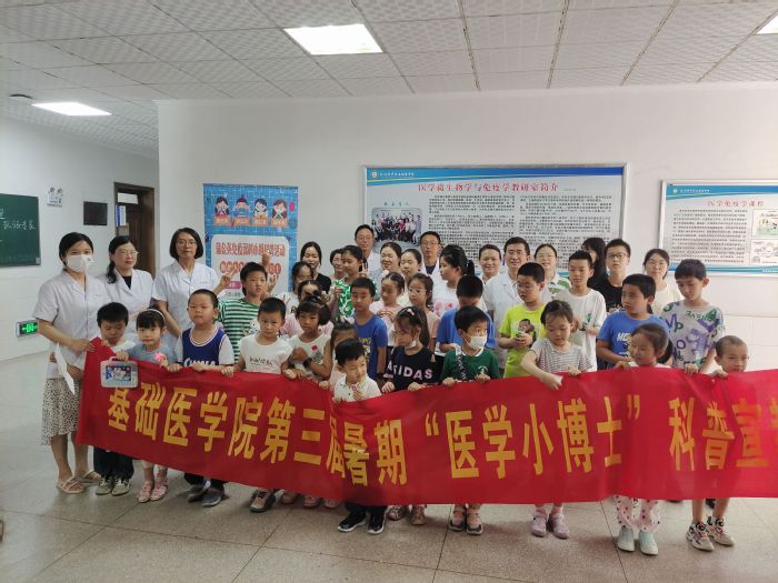 为进一步推动医学免疫学国家级混合式一流课程建设,营造“乐学、向美、明辨、尚行”的课程文化氛围,凸显课程育人价值,打造优质第二课堂,7月4日上午,BB贝博艾弗森医学微生物学与免疫学教研室举行蒲公英免疫双科小组成立仪式暨暑期《保护人体的免疫小卫士》主题科普活动。活动由医学微生物学与免疫学教研室主任刘辉组织策划,党支部书记董博翰主持,医学免疫学课程团队教师、教研室党员教师、蒲公英免疫双科小组员工参加活动。