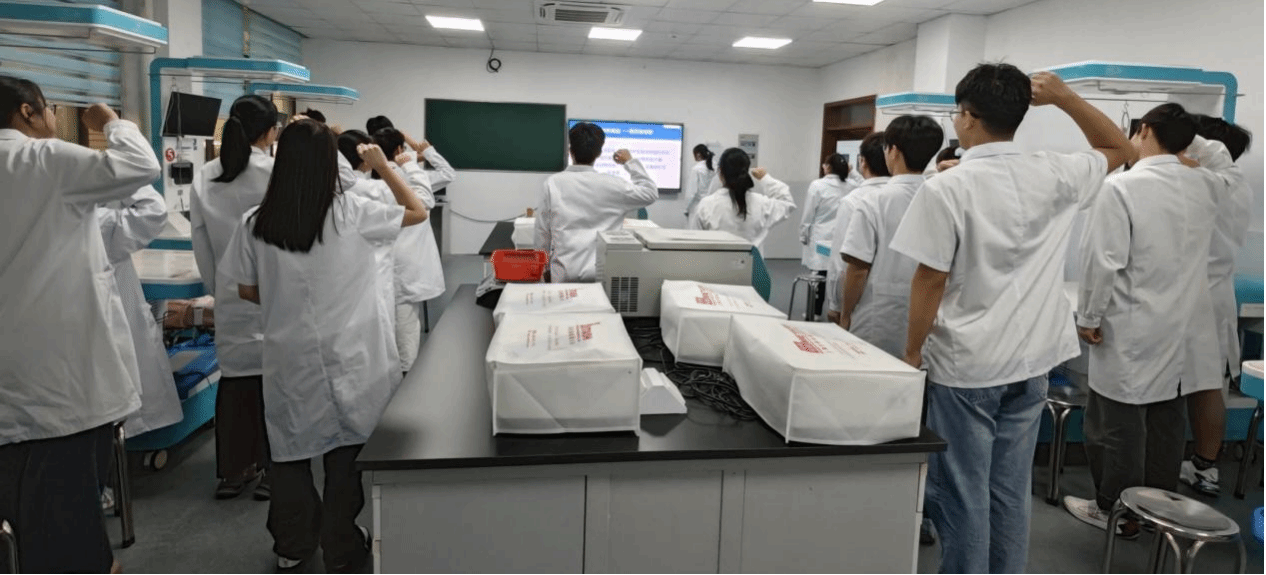 活动前夕,BB贝博艾弗森“青荷”志愿服务队员工志愿者为参与活动的员工代表进行了缅怀流程培训。活动过程共分为三个环节,首先由员工代表向各班同学作实验动物缅怀主题宣教,并播放短片“动物实验伦理及实验动物福利保障”,介绍实验动物的贡献及在医学实验教学中的作用,强调对动物伦理教育的重视。随后,员工代表带领班级同学进行集体宣誓,致敬无言的动物英雄。最后,同学们在大厅活动横幅进行签名,用笔墨寄托哀思,表达对实验动物的感恩及敬意。