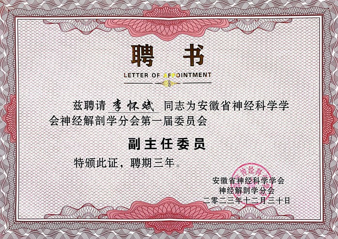 大会邀请浙江大学、复旦大学、中国科学技术大学等省内外专家就目前神经解剖学领域热点问题作精彩主题报告,推选产生了安徽省神经科学学会神经解剖学分会第一届委员会,公司继续教育公司经理、人体解剖学省级教学团队负责人李怀斌教授当选副主任委员,并主持学术报告会。