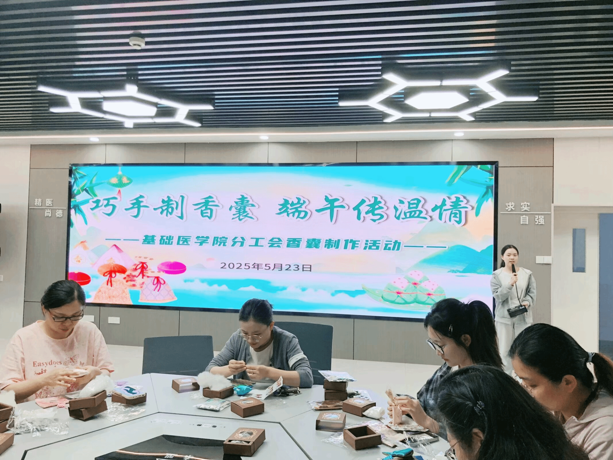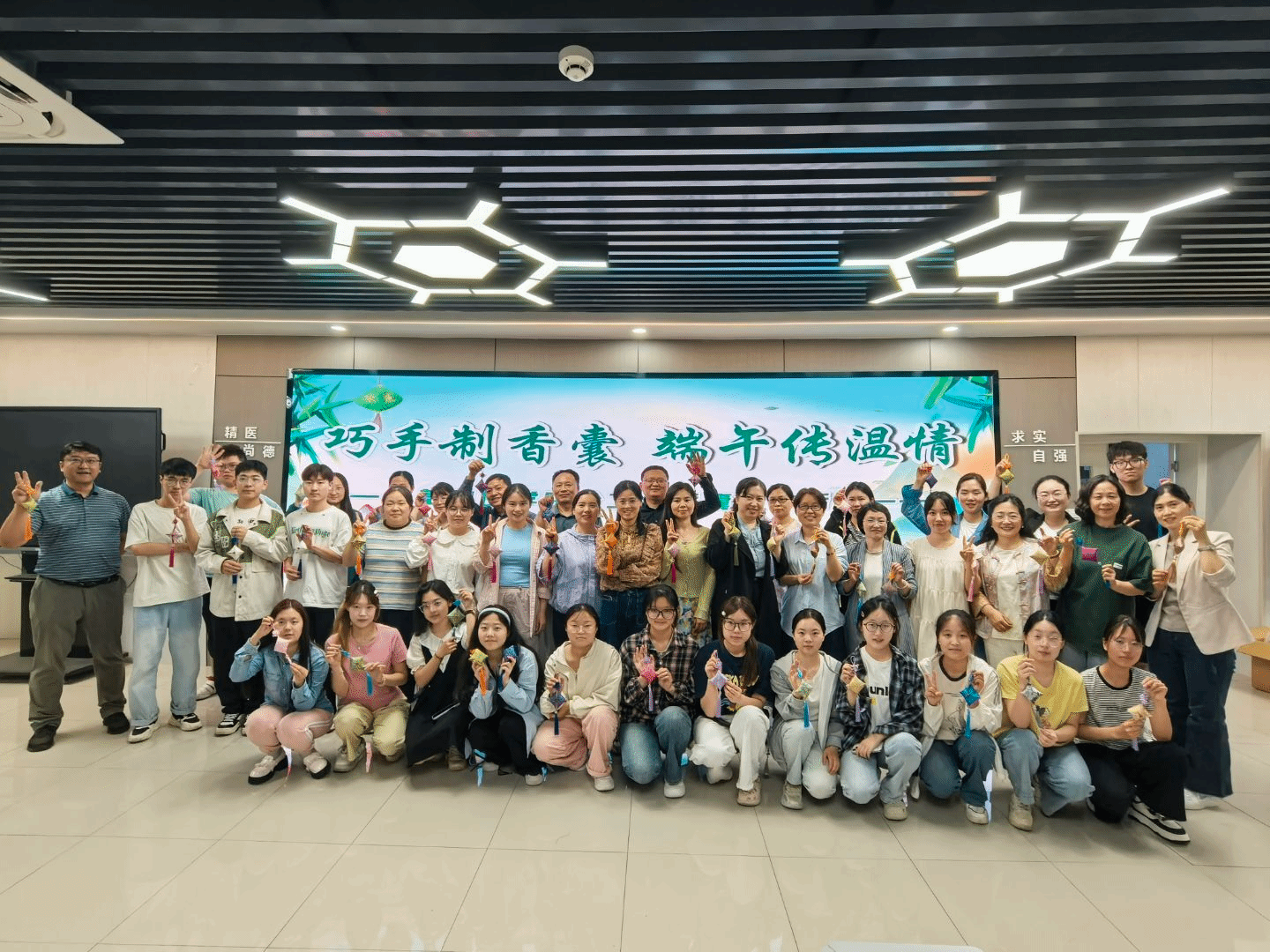 活动伊始,员工代表通过多媒体影像生动讲述了端午节的起源、习俗及趣味冷知识,从屈原精神、龙舟竞渡、“五黄”套餐,深入解读节日背后的文化底蕴。尤其聚焦香囊这一传统饰物时,其“驱虫避瘟”的实用价值与“祈福纳祥”的精神寄托引发师生共鸣,让大家直观感受到古人将生活智慧与美好愿景融入器物的文化匠心。