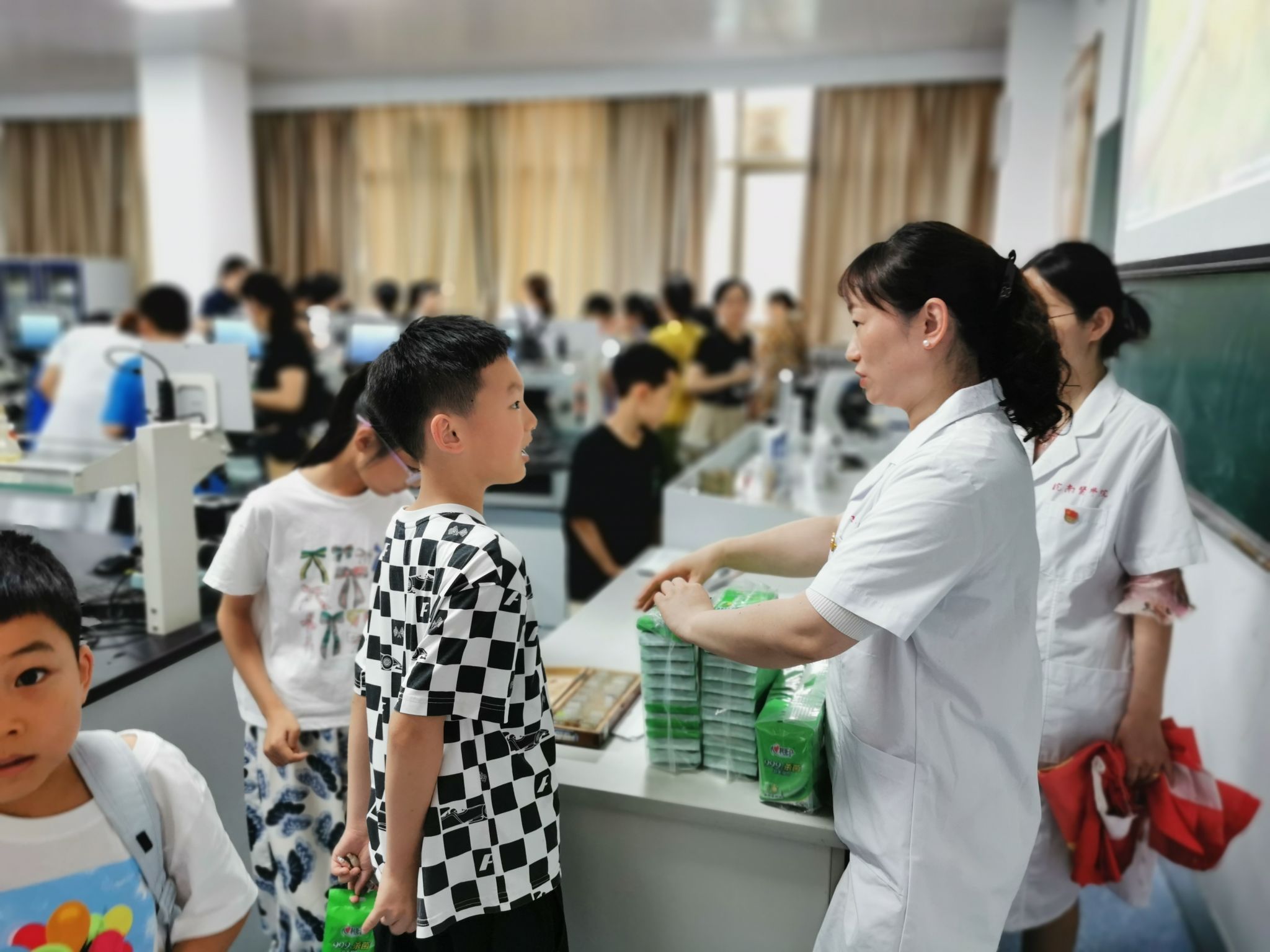除了医学知识科普讲座外,活动还特别设置了实操演练环节。在专业老师的指导下,小朋友们自己动手绘制小动物彩图,制作洋葱切片标本,通过显微镜观察红细胞、洋葱表皮细胞等微观世界的细胞形态,体验了医学研究的乐趣。
