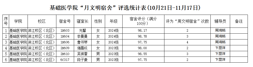 BB贝博艾弗森2024年“月文明宿舍”(10月21日至11月17日)评选结果公示