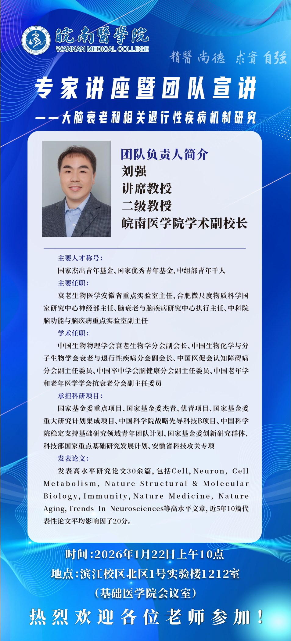 专家讲座暨团队宣讲——脑衰老和相关退行性疾病机制研究
