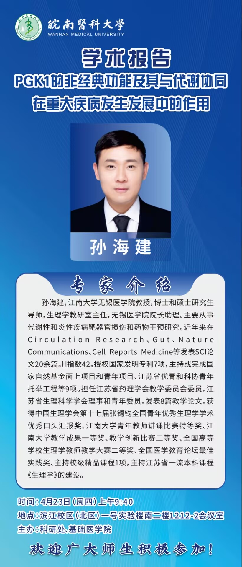 学术报告:PGK1的非经典功能及其与代谢协同在重大疾病发生发展中的作用
