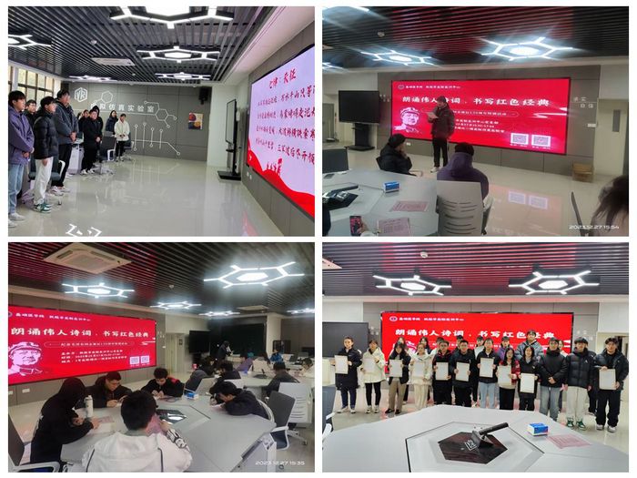 为纪念伟大领袖毛泽东同志诞辰130周年,激励公司青年赓续红色血脉,坚定理想信念,汲取精神力量,12月27日下午,机能学实验实训中心党支部举办“朗诵伟人诗词 书写红色经典”纪念毛泽东同志诞辰130周年主题党日活动。活动在BB贝博艾弗森沉浸式虚拟仿真实验室举行,2023级临床医学专业30名员工代表报名参加活动。