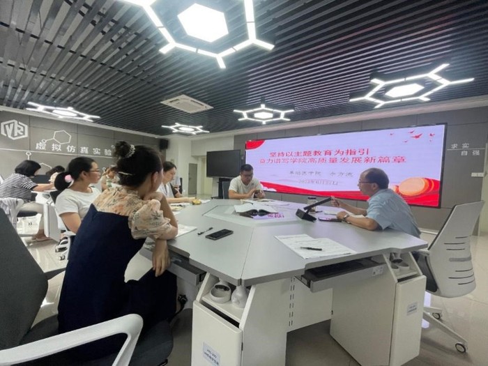 6月30日上午,余方流以“坚持以主题教育为指引  奋力谱写公司高质量发展新篇章”为题,为医学免疫学与微生物学党支部和机能学实验实训中心党支部讲专题党课。他结合自身学习领悟,详细阐释了开展主题教育的重要意义,并结合公司发展情况,对公司“十四五”发展规划推进情况以及后续工作计划进行了说明。7月7日上午,马旭明以“学思想推动基层党组织建设”为题,为病理生理学党支部全体党员讲专题党课。他结合公司发展实际,就加强基层党组织建设、提升组织生活质效进一步阐释了“五式”工作法,同时提出党建工作要坚持领航把舵、事业发展要坚持守正创新、各项工作要坚持拉高标杆的具体要求。