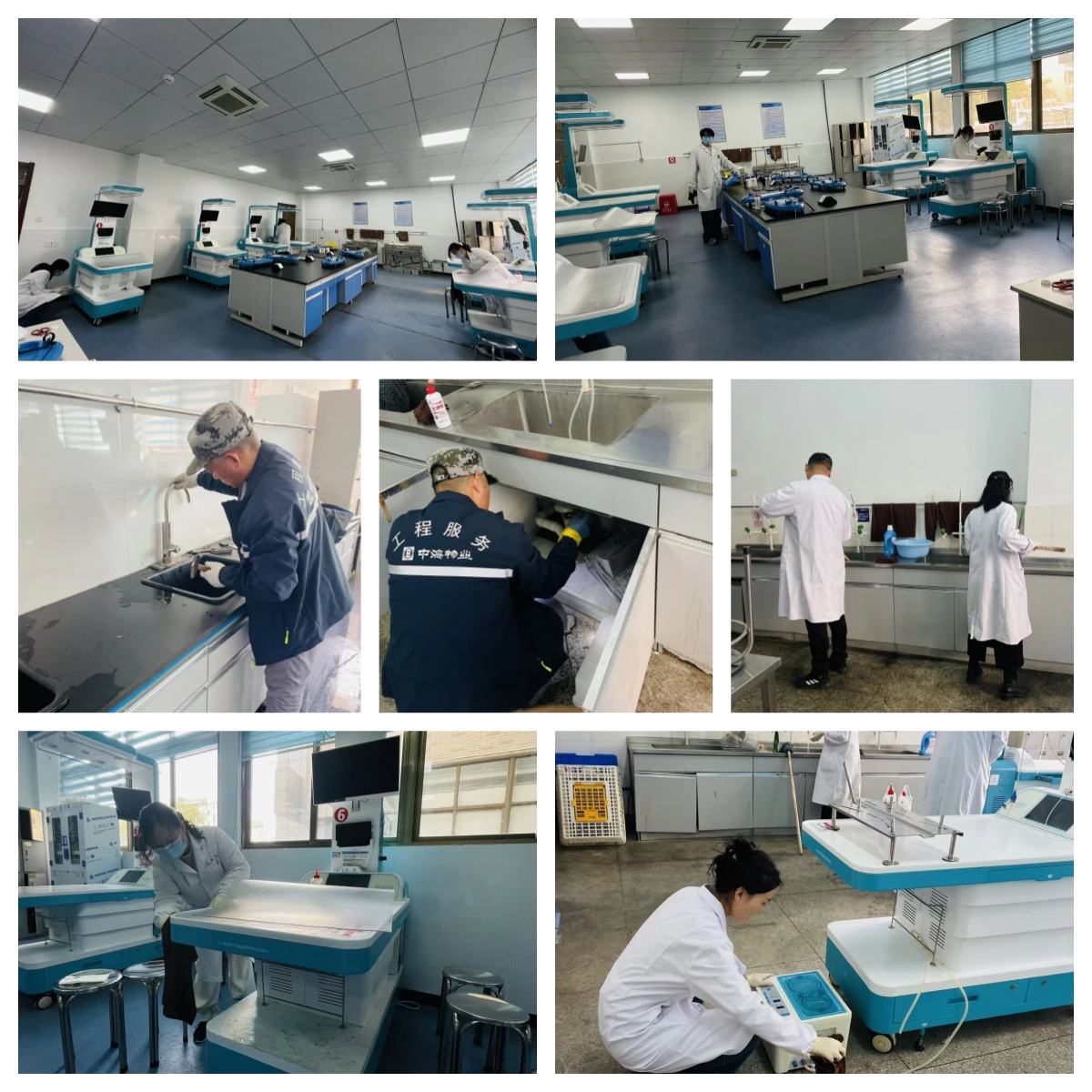 在全面清洁的同时,安全隐患排查是此次活动的另一项核心任务。中心老师们秉持高度的责任感和安全意识,对实验室的水、电、气以及消防设施等进行了细致排查。重点针对前期发现及此次排查中确认的地面线路裸露、水管接口损坏、下水道轻微渗漏等潜在风险点,进行了详细记录与汇总。为彻底消除隐患,中心特邀公司后勤维修部门的专业师傅一同到场,对排查出的问题进行现场勘查与及时维修,确保了实验室基础设施的安全可靠运行。