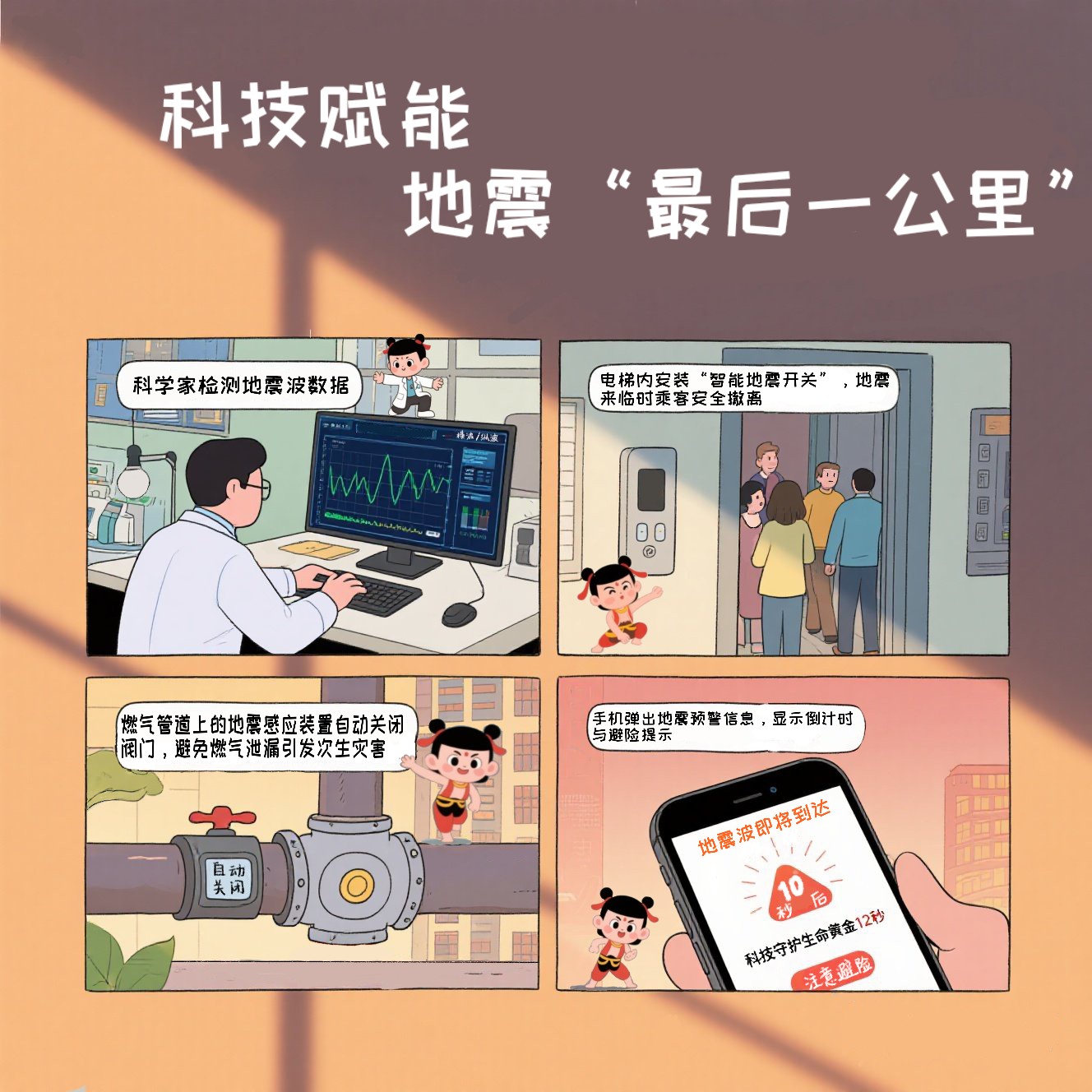 本次大赛以“防震减灾 科普先行”为主题,旨在弘扬科学精神,普及防震减灾知识,提升公众防震减灾意识,提高公民防震减灾科学素质,搭建我省老员工参与科普创作、科学传播与社会实践创新展示平台。赛事前后共历时4个月,收到了来自省内94所高校报送的各类参赛作品共计1580件。大赛共设立一等奖 10 名、二等奖 20 名、三等奖 30名,经过严格公正的评审,沈婷慧同学提交的《科技护安全,人文暖人心》科普漫画作品以其独特的创意、科学的内容和生动的表现形式,赢得了评委的认可,最终荣获三等奖,成为公司唯一获奖作品。